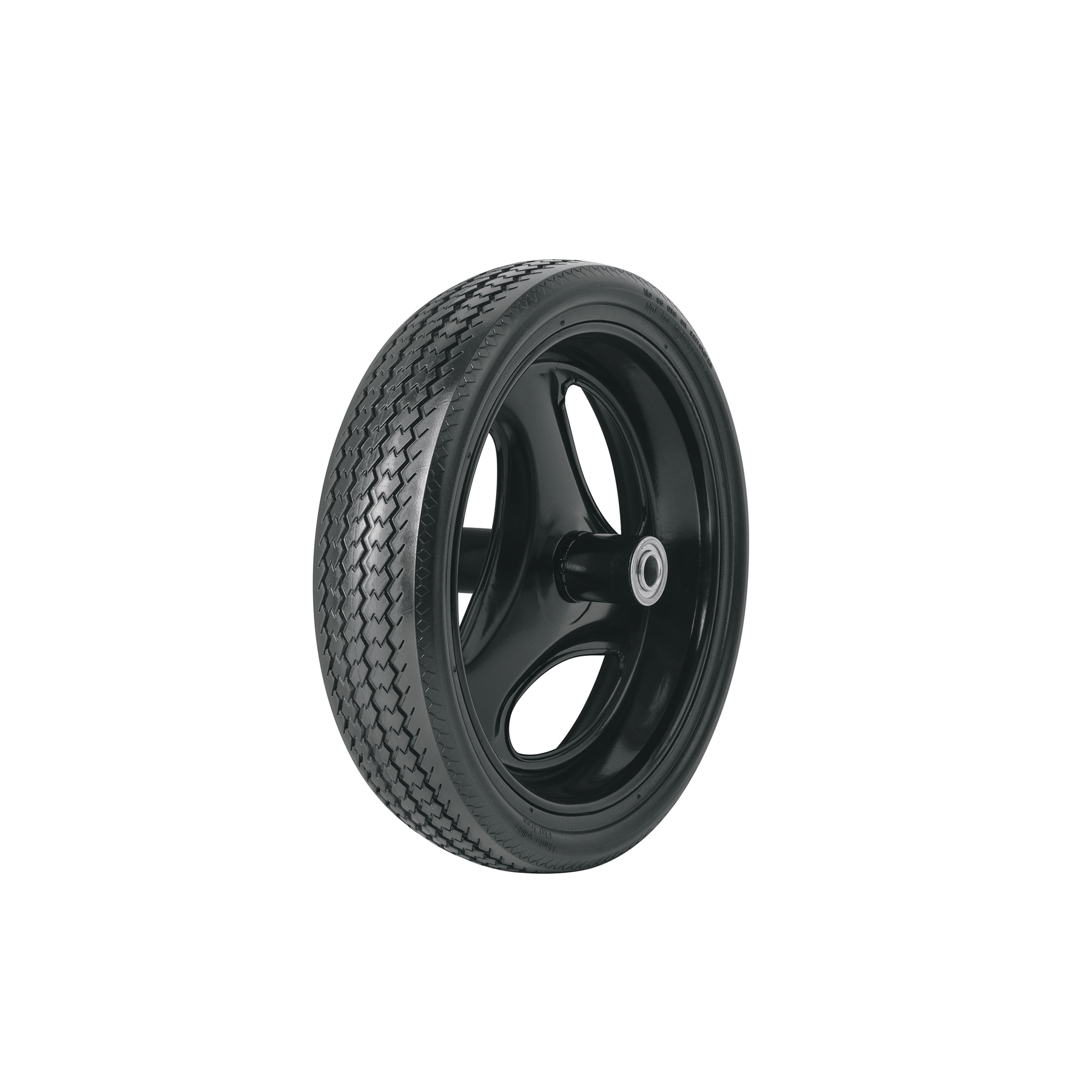 • Llanta imponchable suave y ligera de poliuretano, facilita el acarreo y reduce la fatiga