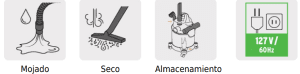 • Manguera flexible con diámetro de 2 1/8″ con seguro de ajuste para accesorios