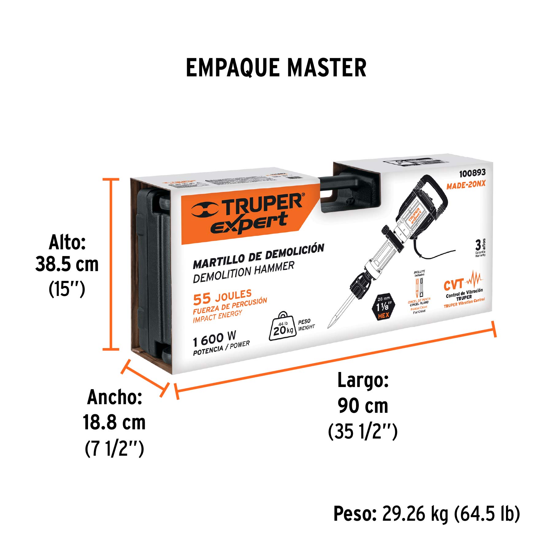 • 55 Joules de energía de impacto que ofrecen gran capacidad de remoción de material