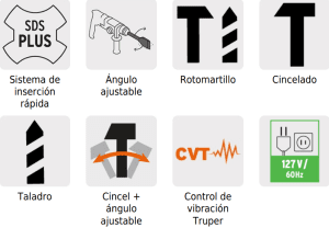 • Mango con sistema de Control de Vibración Truper (CVT) que reduce las vibraciones, haciendo el trabajo más confortable y seguro para el operador