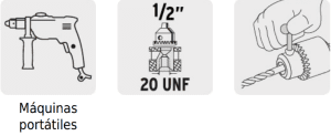 • Funciona para la mayoría de los taladros y rotomartillos comerciales de 1/2″