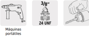 • Funciona para la mayoría de los taladros y rotomartillos comerciales de 3/8″