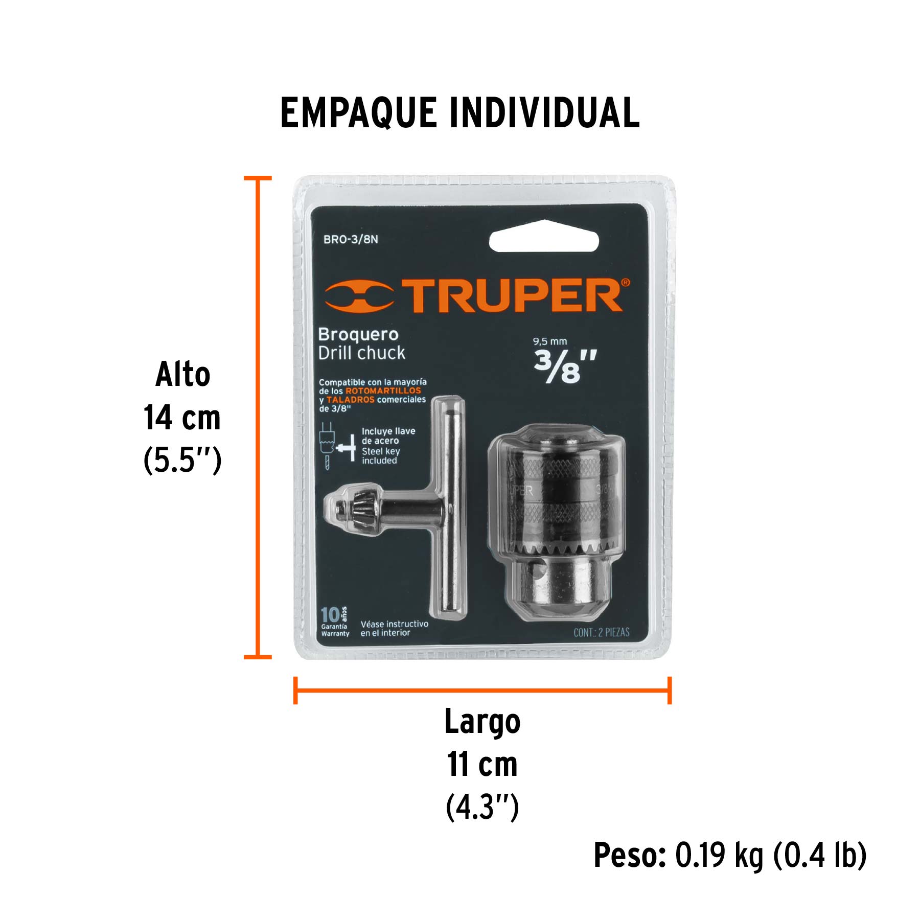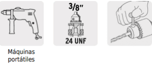 • Funciona para la mayoría de los taladros y rotomartillos comerciales de 3/8″