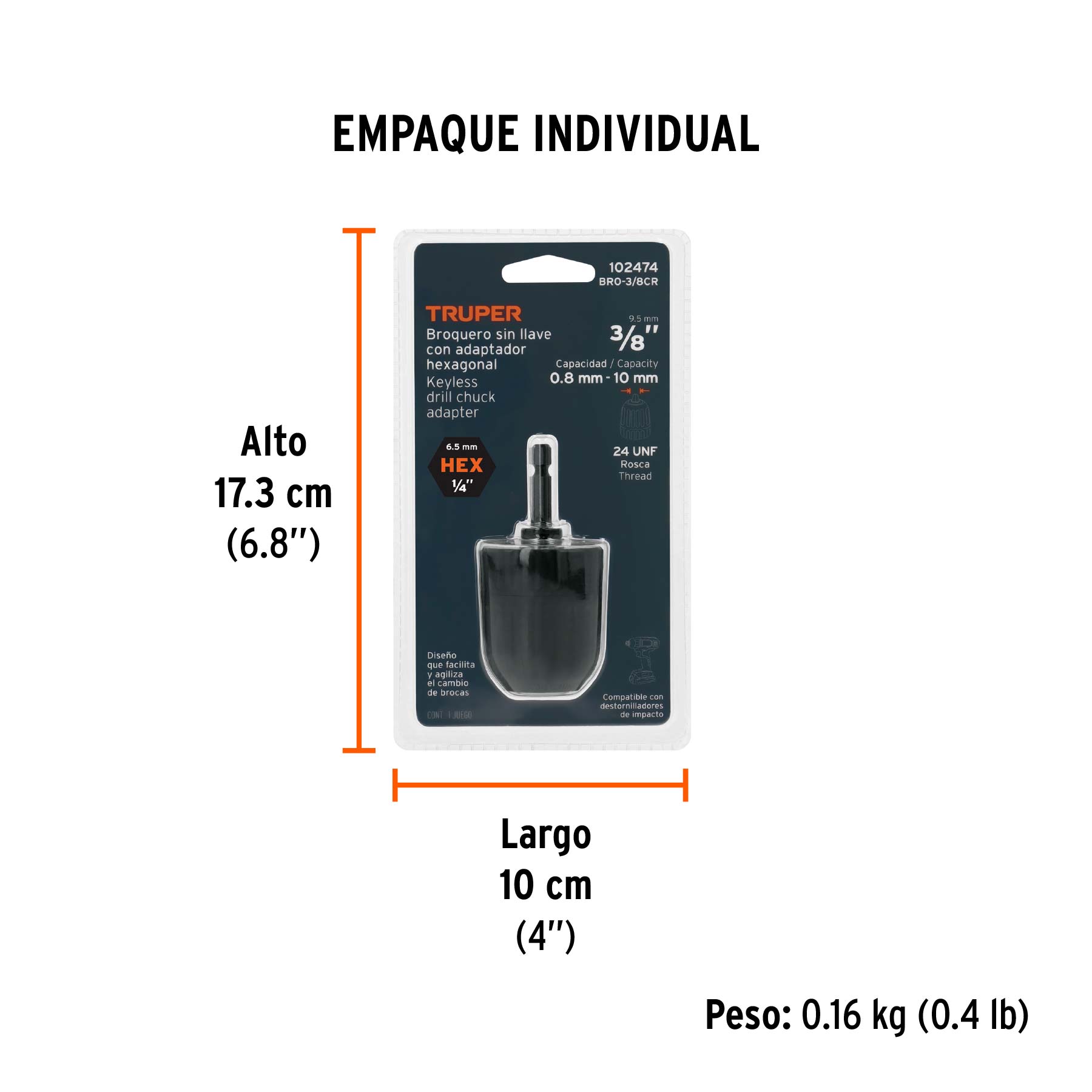• Funciona para la mayoría de los taladros y rotomartillos comerciales de 3/8″